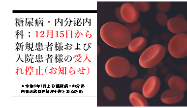 糖尿病・内分泌内科: 新規患者様および入院患者様の受入れ停止について